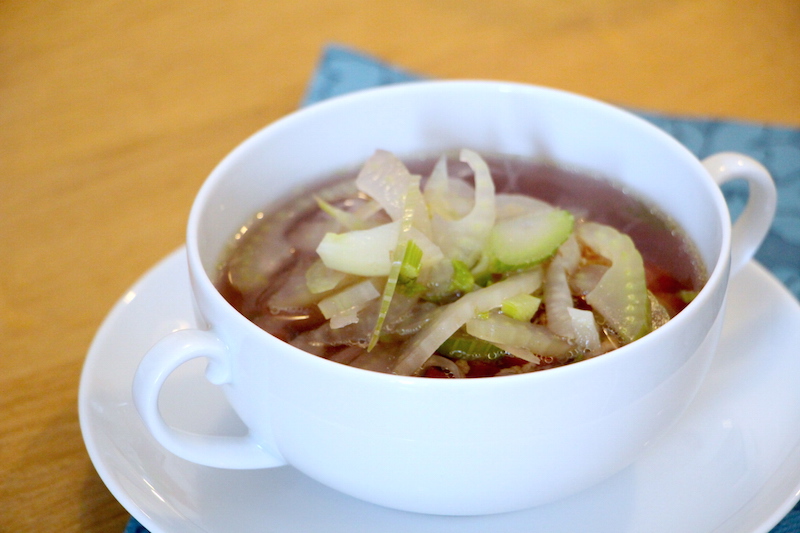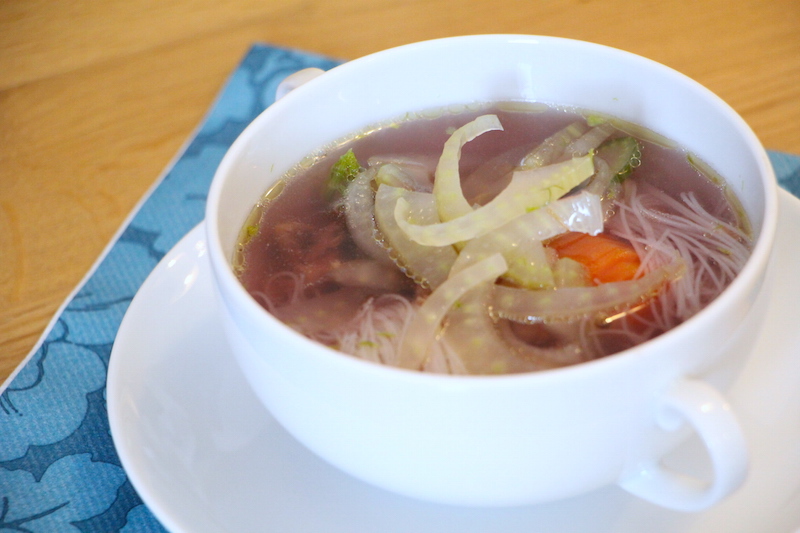 Lila Hühnersuppe mit Fenchel und Pilzen