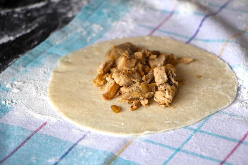 Gefüllte Teigtaschen mit Hühnerfleisch