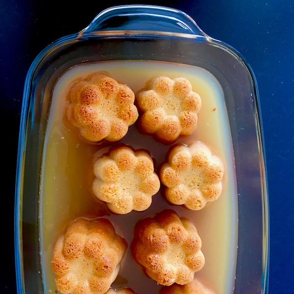 Schritt 3: Die fertigen Küchlein in eine tiefe Schale stellen und den heißen Most hineingießen. Die Küchlein dürfen dabei nicht übergossen werden, da sie sonst zerfallen. Alles für etwa eine halbe Stunde stehen lassen, bis die Küchlein vollgesogen sind. Je nach Jahreszeit heiß oder kalt servieren. Wer möchte.
